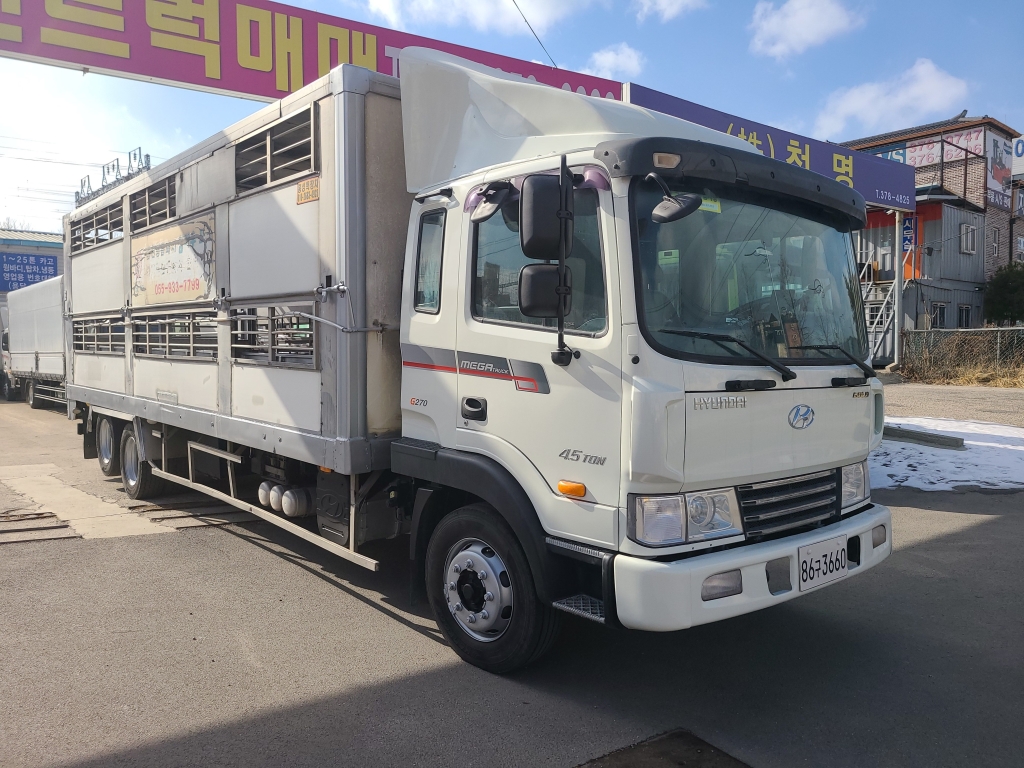 현대4.5톤가축수송차/후축/메가트럭/골드260마력/적재함7.4(실내치7미터)상태특/부가세별도 |